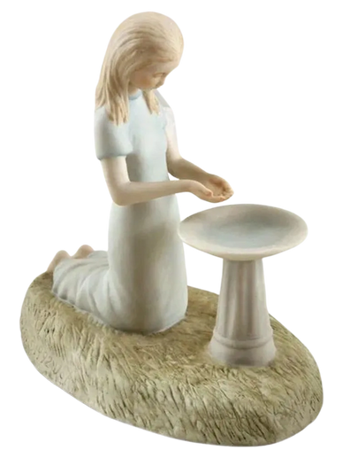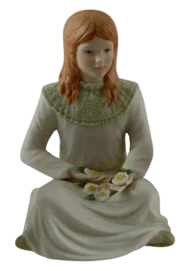 The Little Princess was created from the 1988 Flower Girl. Gone are the floral decorations and her basket while she gained a golden butterfly. The first edition Golden Princess had the butterfly attached with slip and fired as a single piece of porcelain. Unfortunately, the studio reverted to its old ways and attached the butterfly in the hand of the third edition Little Princess with an adhesive bonding agent which made it more susceptible to coming loose.