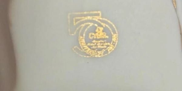 Items selected for the 50th Anniversary celebration of the studio's continuous operation (since Boleslaw Cybis first produced art in the United States) carried the golden back stamp noting Cybis as America's Oldest Porcelain Art Studio.