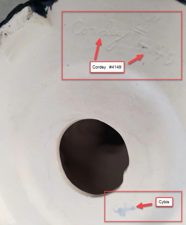Sold as an open edition, it was retired from production in 1965. It was one of the few items originally introduced as a Cordey sculpture and later carried over to the Cybis line prior to Cordey production ending. It has been found marked as Cordey (with the incised Cordey signature and or blue Cordey stamp), dual marked with both Cordey (incised) and Cybis (stamp) or hand signed Cybis only.