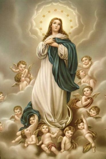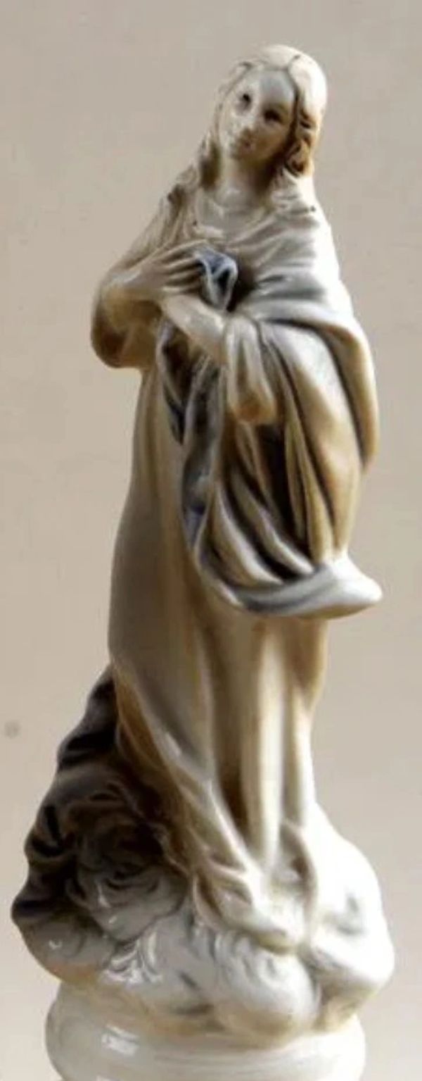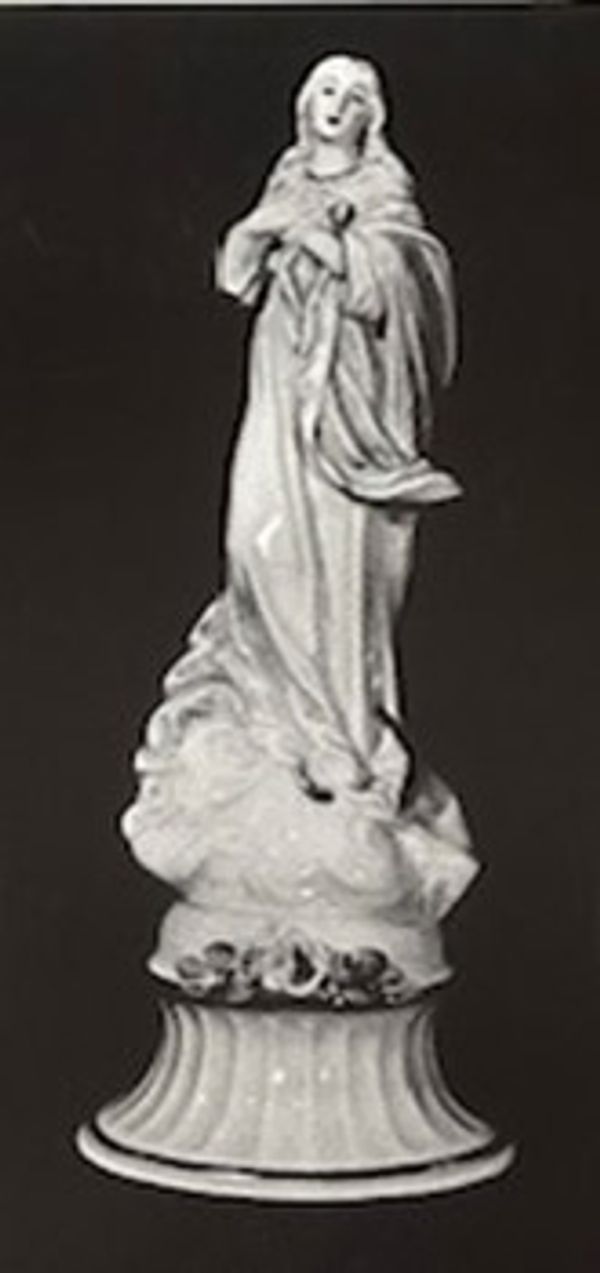 This sculpture depicts Mary being "taken up" with clouds and a sickle moon at her feet. Numerous paintings (example shown below) illustrate her assumption. In reviewing price lists it was apparent the studio mistakenly identified this piece, sculpture 2104, as Immaculate Conception. (The actual piece named Immaculate Conception is design number 251 measuring up to 18" tall with attached base.) The studio made this error on the 1963 Price List and possibly prior to that. It was then carried forward to all later publications. It is surprising the error was not caught by anyone within the Cybis Studio considering the staff size and higher percentage of adherents to Catholicism in the Trenton area in the early 1960's. It is likely the mistake was made around the time the 1963 price list was released as this was possibly one of the last years the piece was available for sale. Earlier publications were likely correct or customers purchasing the sculpture would certainly have pointed out such an error.
